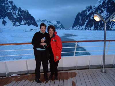 Back on the ship, we changed from our “Michelin Man” look to less cumbersome outdoor attire. Karen Mahmoudi and I took advantage of the photo op: